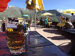 フリューアルプのレストランが見えてきた、ちょっとホッとするなっしな。