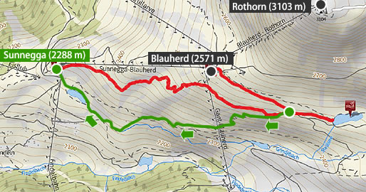 ロートホルンからはフリューアルプ経由で下っていくなっしー。