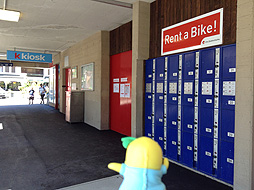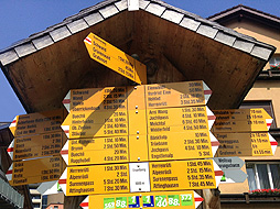 駅前の広場にはハイキング用の黄色い標識が多数。
