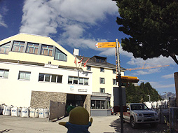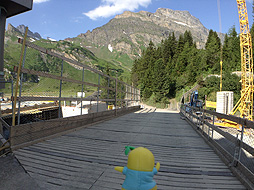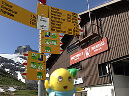 標識に沿って、ヨッホパスをのチェアリフト乗り場へ歩いていくなっしー。