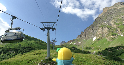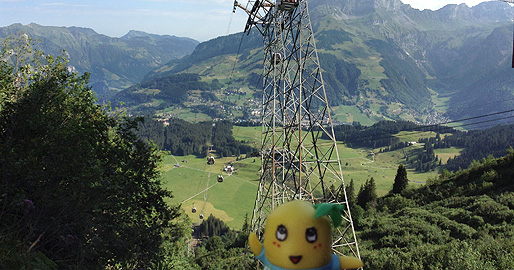 ヨッホパスへのチェアリフトに乗るなっしー。これで一気に峠の上まで上がるなっしよ!もちろん、体力があれば歩いて登れるなっしー!