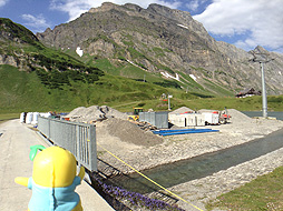 トゥリュプゼー(Truebsee)の湖の湖畔を歩いていくなっしー。工事車両が沢山あってちょっと興ざめなっしー。スイスのハイキングではありがちなっしなー。稼ぎ時は冬のスキーシーズンなので、夏場はガッカリってことは多いなっしー。