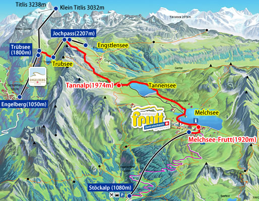 今日は、リフトを乗り継いでJochpass (2207 m)に登り、そこからEngstlenalp(1850 m)、Tannalp(1970 m)、Melchsee-Frutt(1900 m)と歩いて、帰りは電車で帰ってくる予定なっしー。結構な長距離なっしよ!