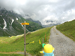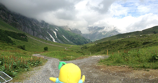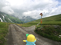 道の両脇の牧草地には、沢山のマーモットがいるなっしー。こういう天気の日にはマーモットが穴の外に出てくるなしかー?