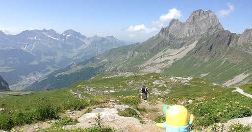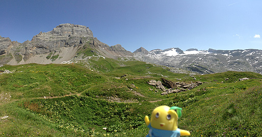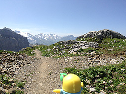 「Rugghubelhuette(2295m)」から登ってきた方向を望むなっしー。