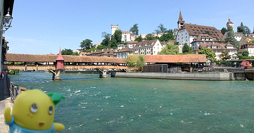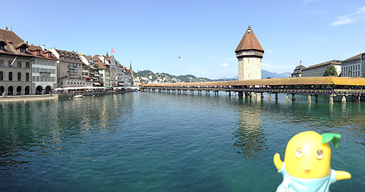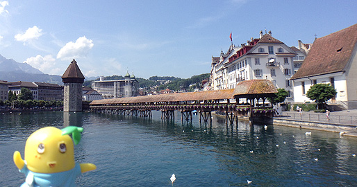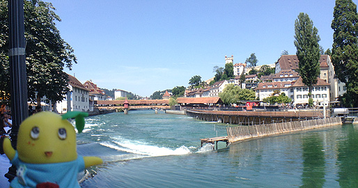 駅を出てすぐ、川にかかったカペル橋が見えてくるなっしー。