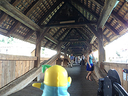 新市街と旧市街をつなぐ、屋根の付いた木製の橋なっしよ。