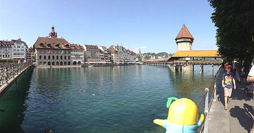 ルツェルンのシンボル、一番の見所がロイス川にかかる「カペル橋(Kapellbruecke)」なっしー。