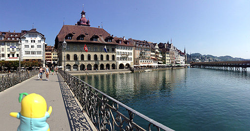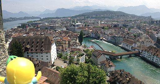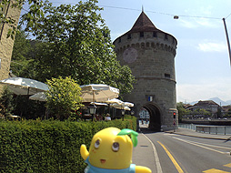 実は、ここの地ビールを飲む為にルツェルンに来たといっても過言ではないなっしー。カペル橋を見ながらのむビールは美味しいなっしなー。今日は最高に気温も高いのなおさら旨いなっしー。ちなみにお値段、8CHF。1070円!