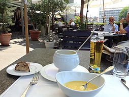 ビールとスープ、パスタとセットで、どーんと30CHF。4000円なっしよー!