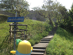 一つ目の塔が見えてきた、登ってみるなしかー。ハイキングで鍛え上げた脚で、階段なんか楽勝・・・やっぱりきついなしなー。階段が延々続くなっしー!