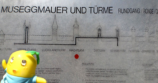 14世紀ごろ、ルツェルンには「ムーゼック城壁 (Museggmauer)」という町を囲む壁が建てられたなっしー。 現在では壁のごく一部と9つの塔が残り、そのうち4つの塔に登ることができるなっしよ。ちょと行ってみるなっしな。