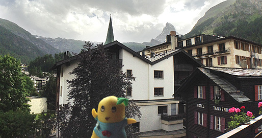 雲は多いけど、部屋からマッターホルンが見えるなっしー。ツェルマットに来たって感じなっしなー。