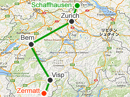 シャフハウゼンから目的地ツェルマットまで、本日も4時間の列車旅なっしー。