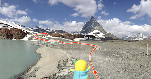 どんどんマッターホルンが近づいてくるなっしー。でも、ここから見るマッターホルンは見慣れた形ではないので不思議な感じなっしなー・・・。