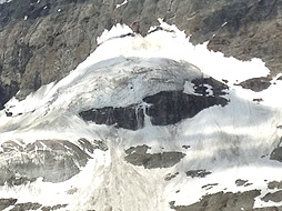 時々、雷のような音と一緒ににマッターホルン側面の雪?氷が崩れていくのが見えるなっしー。