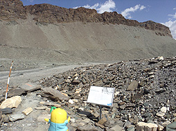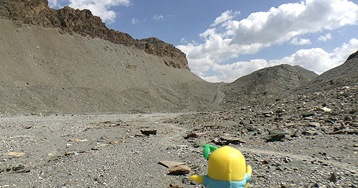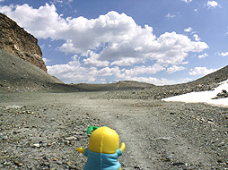 灰色の部分は、昨日見たのと同じ氷河の侵食の跡「モレーン(moraine)」なっしなー。昔はこの辺までみっちり氷河があったなしかー。