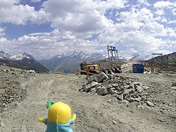 人の居ない大自然の中を歩いているように見えるけど、ときどき冬のスキーシーズンに向けた工事車両なんかを見かけるなっしー。上半身裸で働いているおじさんなんかもよく見かけるなっしよー。本当にここはスイスか!?