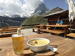 ヘルンリヒュッテは、マッターホルンのヘルンリ稜を登る人の拠点となる山小屋なっしー。マッターホルン初登頂から150周年を記念して、今年7月にリニューアルしたばかりでとても綺麗になったって聞いたなっしー。